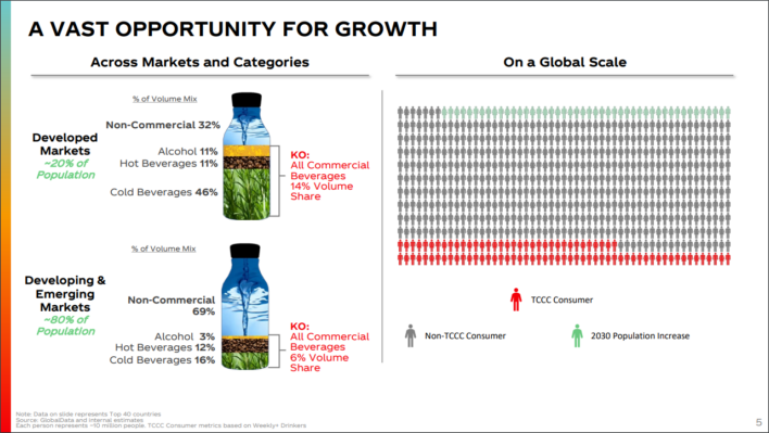 우리가 주식을 좋아하는 한 가지 이유는 광범위한 경제 성장률을 초과하여 전 세계적으로 계속 성장하는 산업에서 경쟁하기 때문입니다. 이것은 코카콜라가 최근 몇 년 동안 확실히 활용해 온 업계의 전반적인 성장 수준을 높입니다.